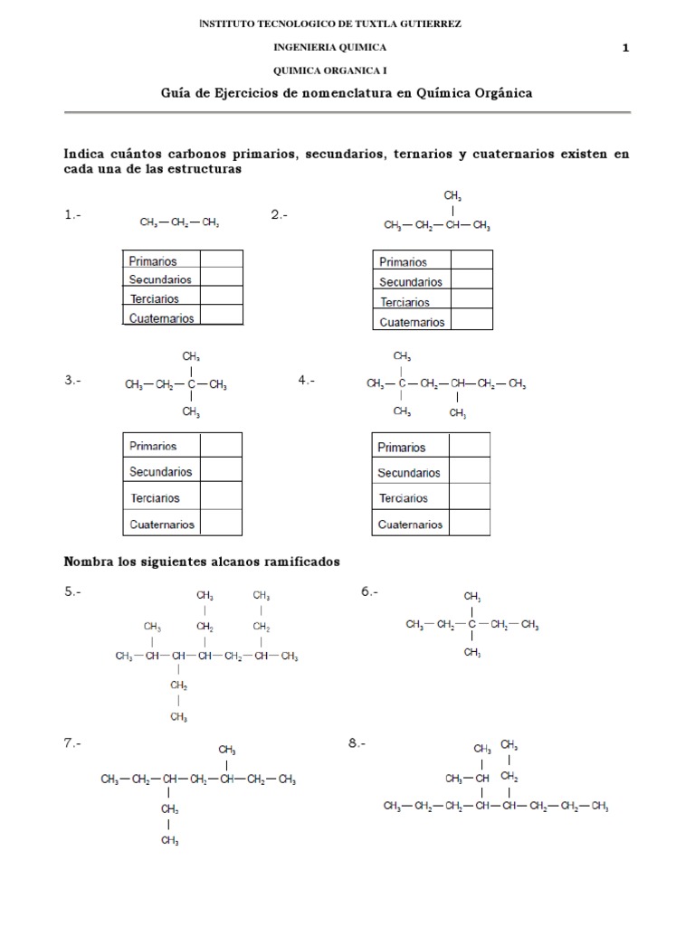 Guia De Ejercicios De Nomenclatura En Quimica Organica