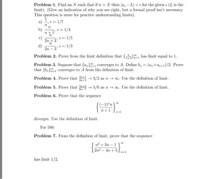 Solved Problem 1 Find An N Such That If N N Then Lan L Chegg Com