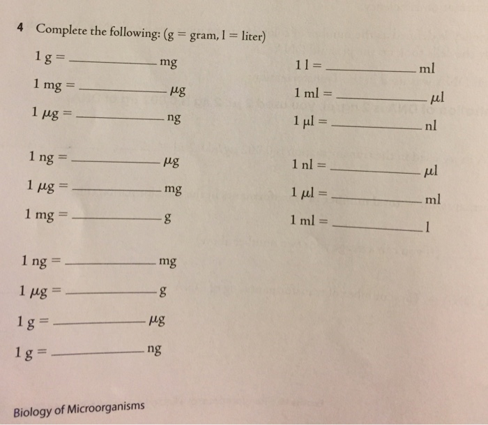 Solved 4 Complete The Following G Gram 1 Liter Mg Ml Chegg Com