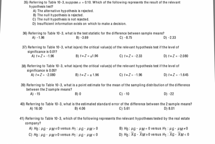 Referring To Table 10 3 Suppose A 0 10 Which Of Chegg Com