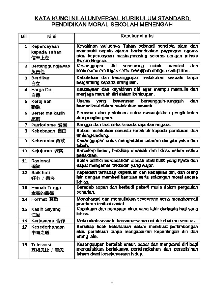 18 Nilai Universal Kssm Pendidikan Moral Spm Pdf
