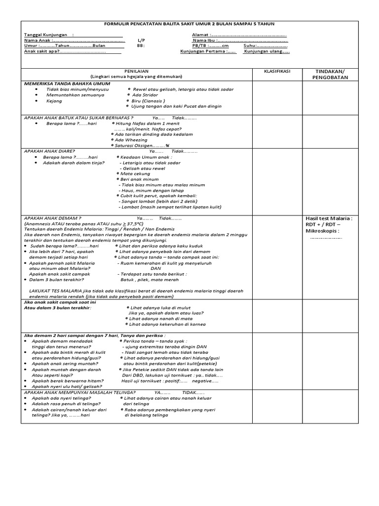 Formulir Pencatatan Balita Sakit Umur 2 Bulan Sampai 5 Tahun