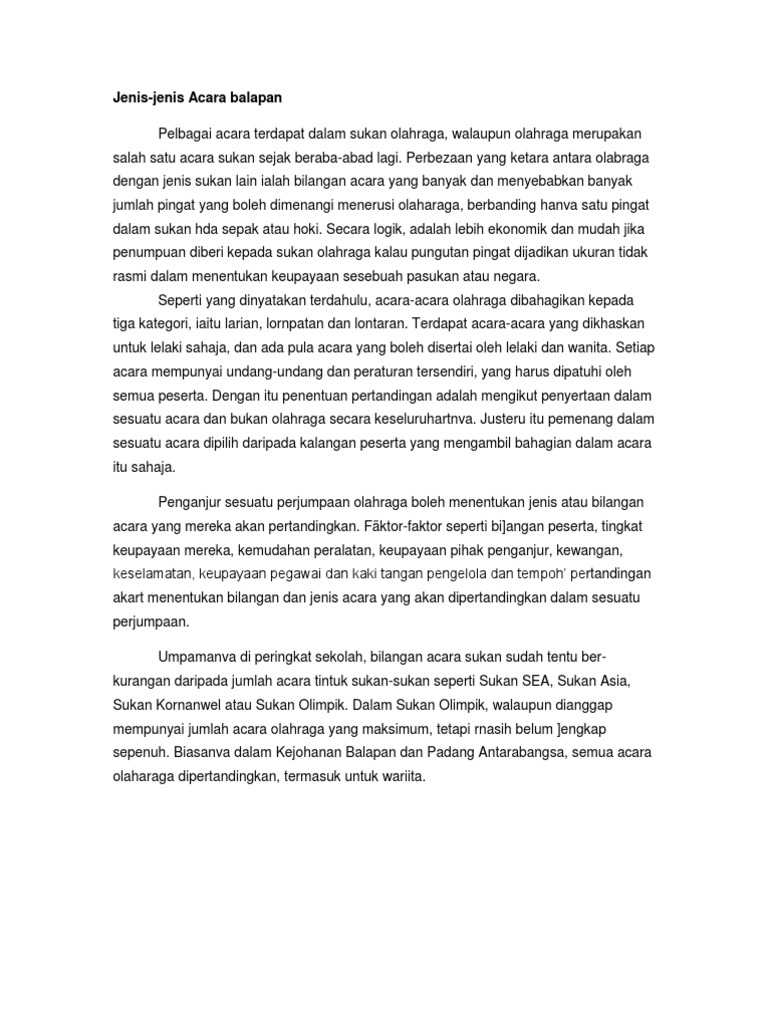 Jadual Acara Sukan Tara Kejohanan Balapan Dan Padang