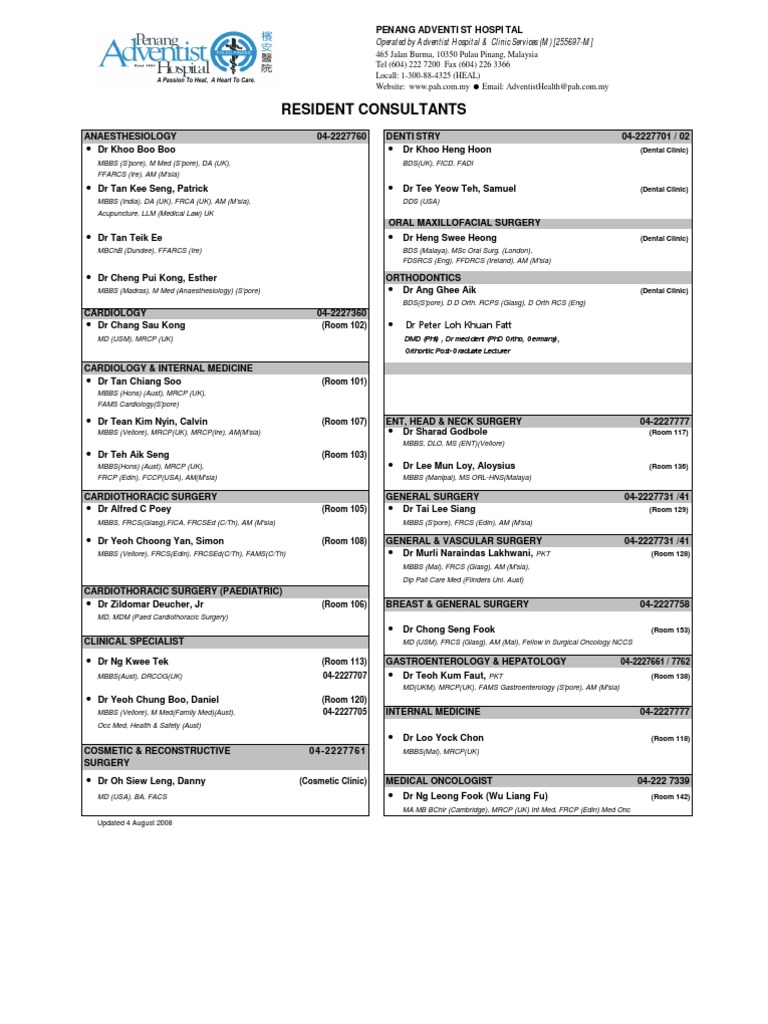 Doctors On Leave List Updated 20 Penang Adventist Hospital Facebook