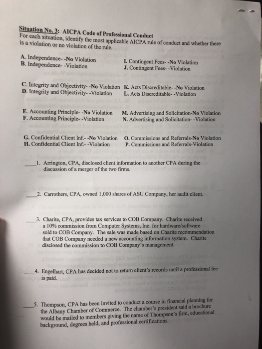 Solved Situation No 3 Aicpa Code Of Professional Conduc Chegg Com