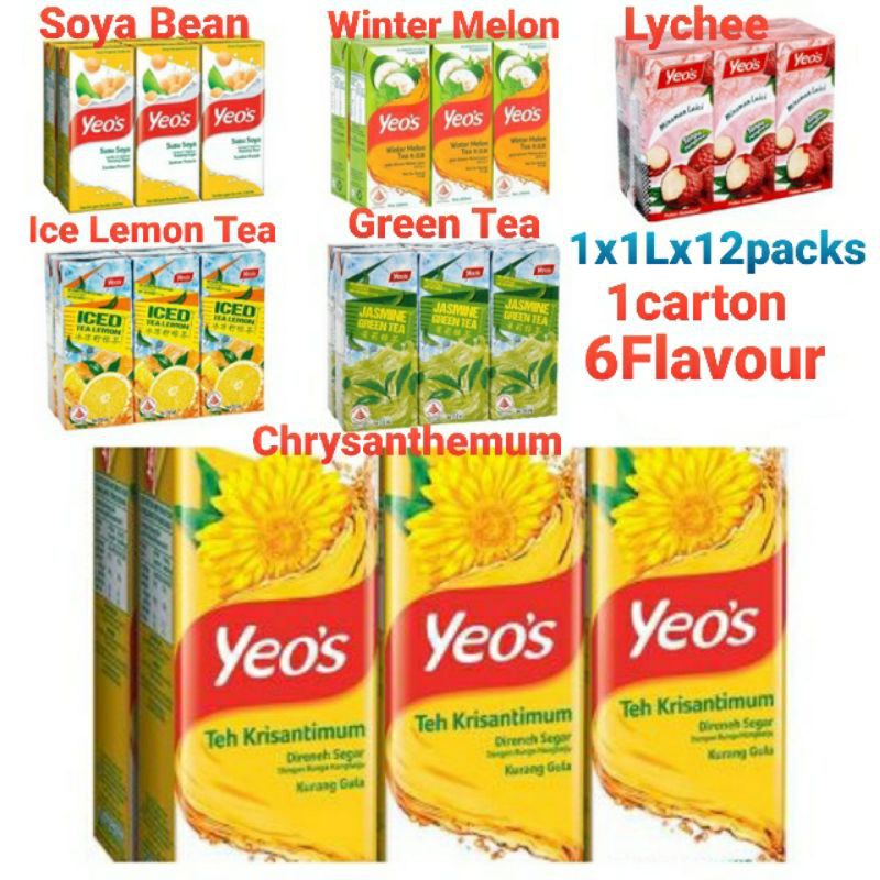 Yeo S 1lit X12 S Minuman Air Kotak Chrysanthemum Soya Bean Lychee Winter Melon Ice Lemon Tea Jasmine Green Tea Shopee Malaysia
