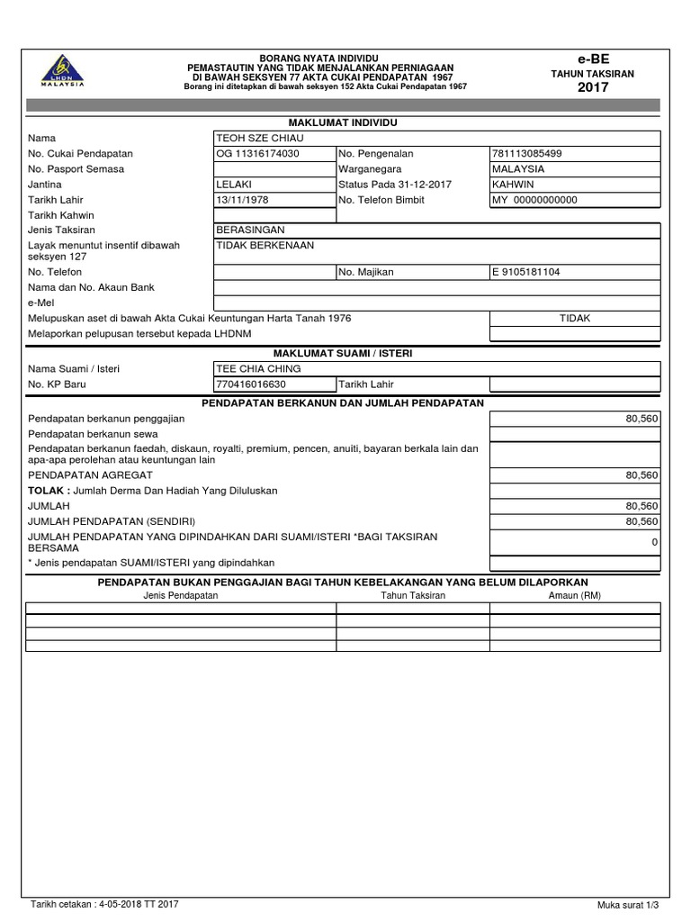Sayangwang Cara Isi E Filing Lhdn 2017 Panduan 2018