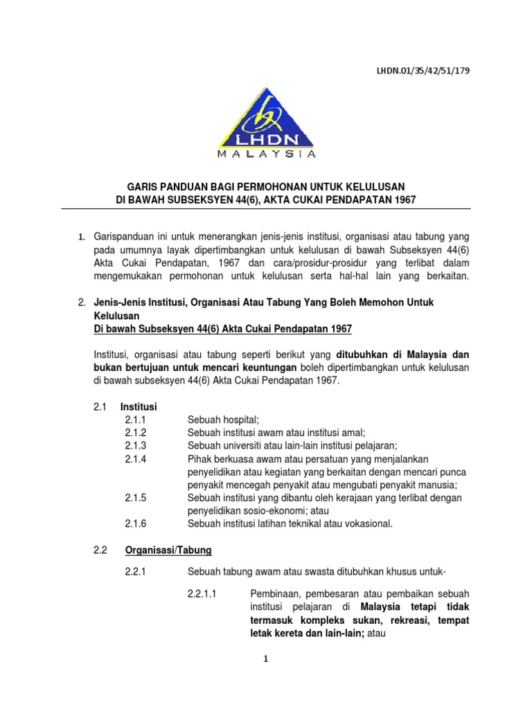 Garis Panduan Permohonan Untuk Kelulusan Di Bawah Subseksyen 44 6 Akta Cukai Pendapatan 1967 Bagi Tabung Sumbangan Wang Awam Sekolah Pages 1 6 Text Version Anyflip