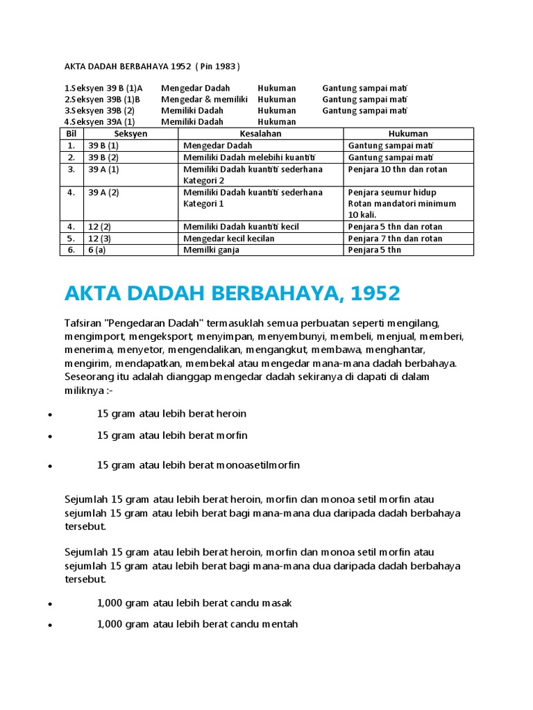 Akta Undang Undang Dadah Akta Dadah Berbahaya 1952 Pindaan 1998