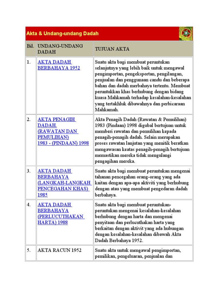Pendidikan Pencegahan Dadah Ppda Akta Undang Undang Penyalahgunaan Dadah