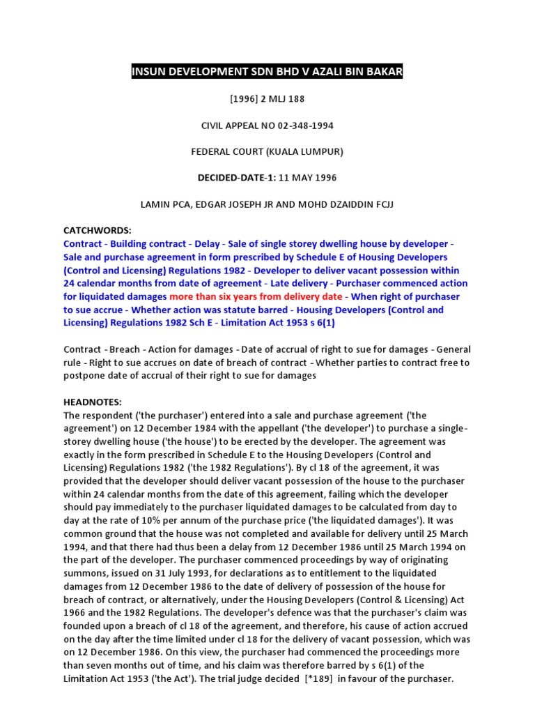 Case Insun Deve V Azali Damages Liquidated Damages