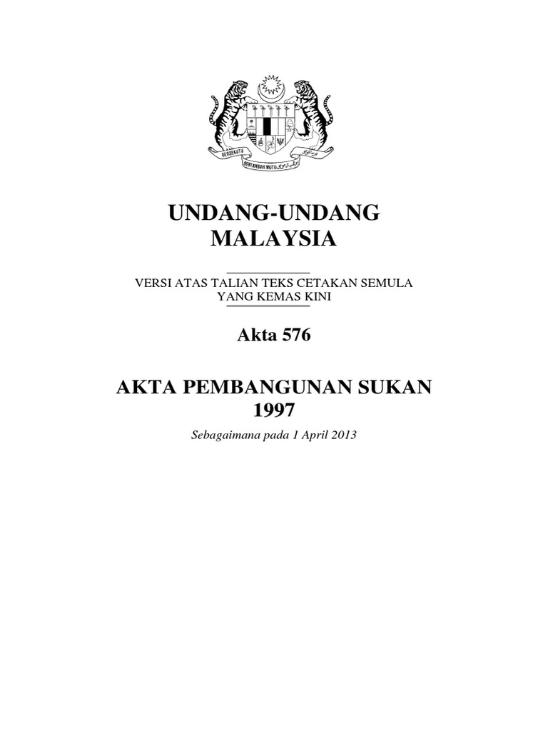 Http Www Kbs Gov My Akta Dasar Akta Html Download 530 Akta Pembangunan Sukan 1997 Akta 576