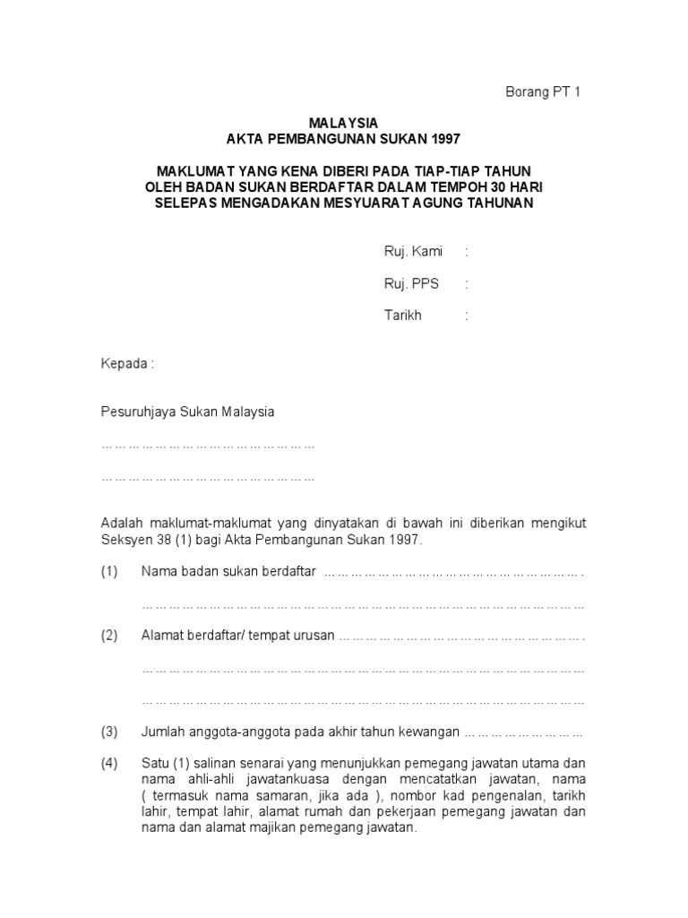 Copy Of Borang Pt 1 Akta Pembangunan Sukan 1997