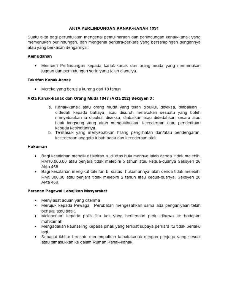 Holdings Akta Perlindungan Kanak Kanak 1991 Akta 468 Peraturan Peraturan
