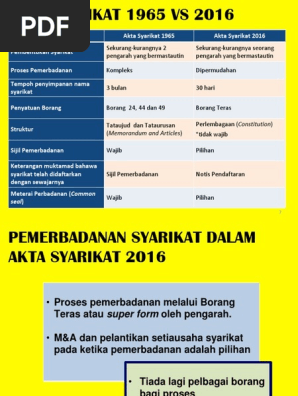 Akta Syarikat 1965 Vs 2016 By Zawawi On Emaze