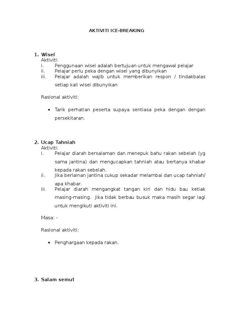 Ice breaking ice breaking kelompok besar aktiviti 1. Mereka dapat mengenali diri masing masing dengan cara yang menyeronokkan. Di dalam fikiran hanya ingin bermain dan bergembira sahaja.