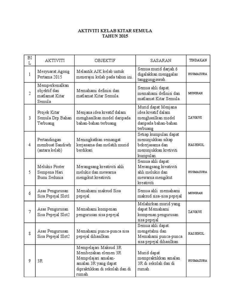 Koleksi Rancangan Aktiviti Tahunan Persatuan Dan Kelab Sumber Pendidikan
