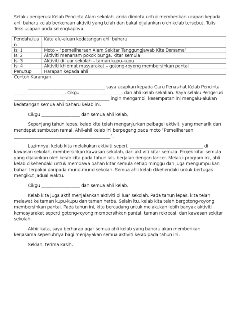 Selaku Pengerusi Kelab Pencinta Alam Sekolah