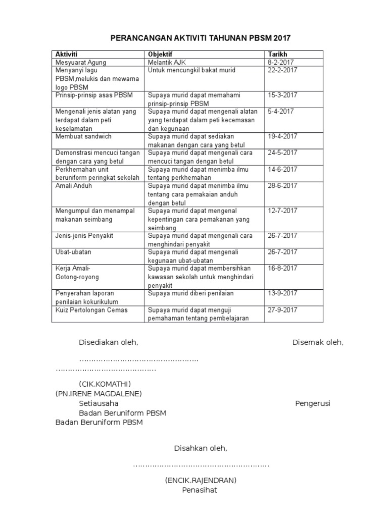 Perancangan Aktiviti Tahunan Pbsm 2017