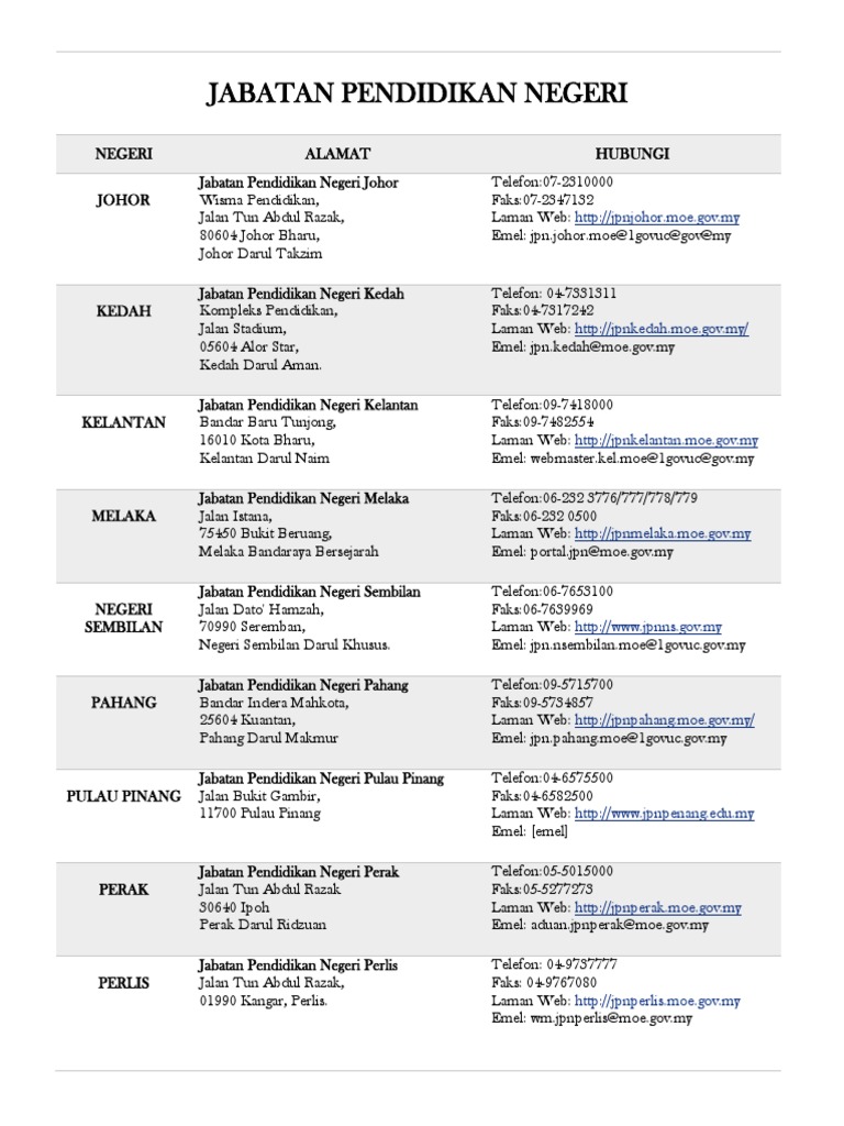 Senarai Jabatan Pendidikan Negeri Jpn Di Malaysia Permohonan My