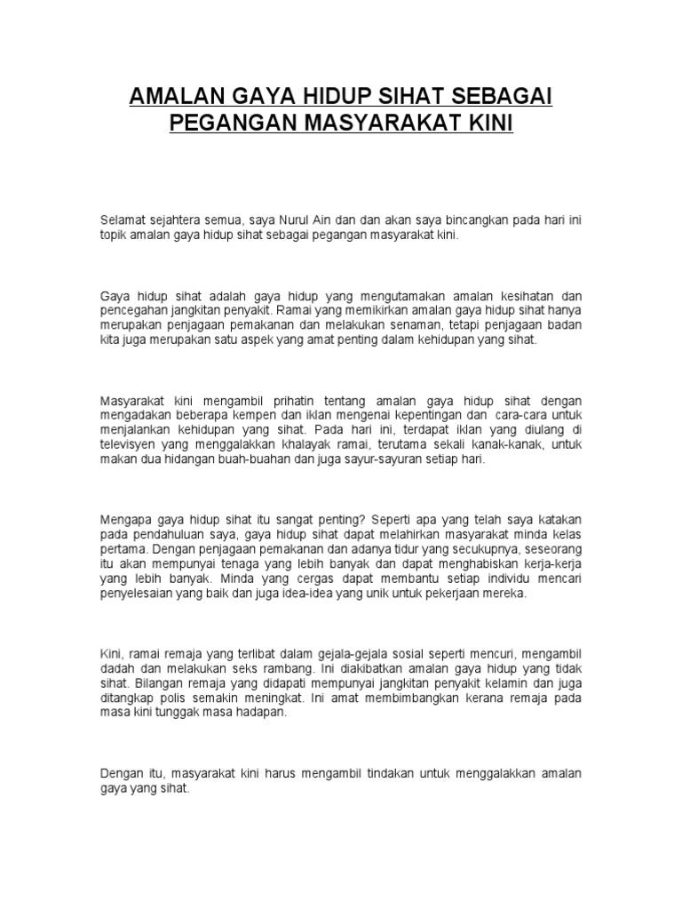 Cara Mengamalkan Gaya Hidup Sihat Contoh Karangan