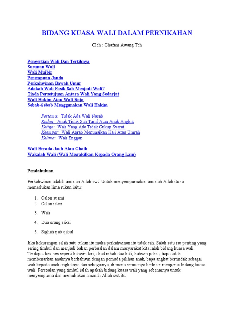 Bidang Kuasa Wali Dalam Pernikahan