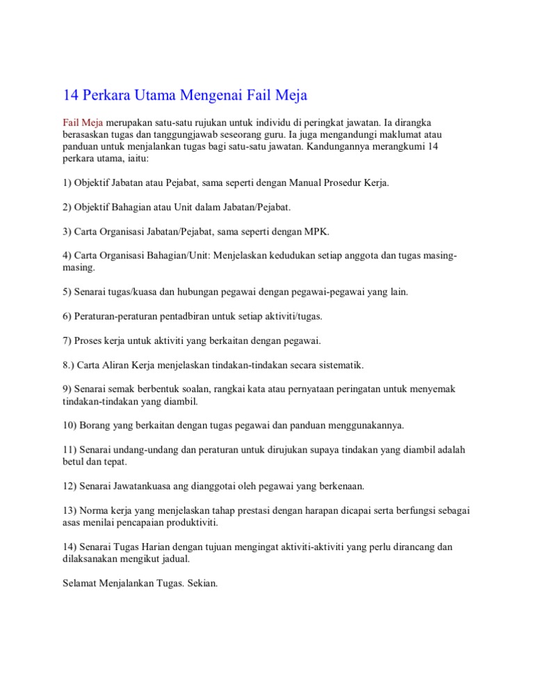 Fail Meja Dan Manual Prosedur Kerja Ppt Download