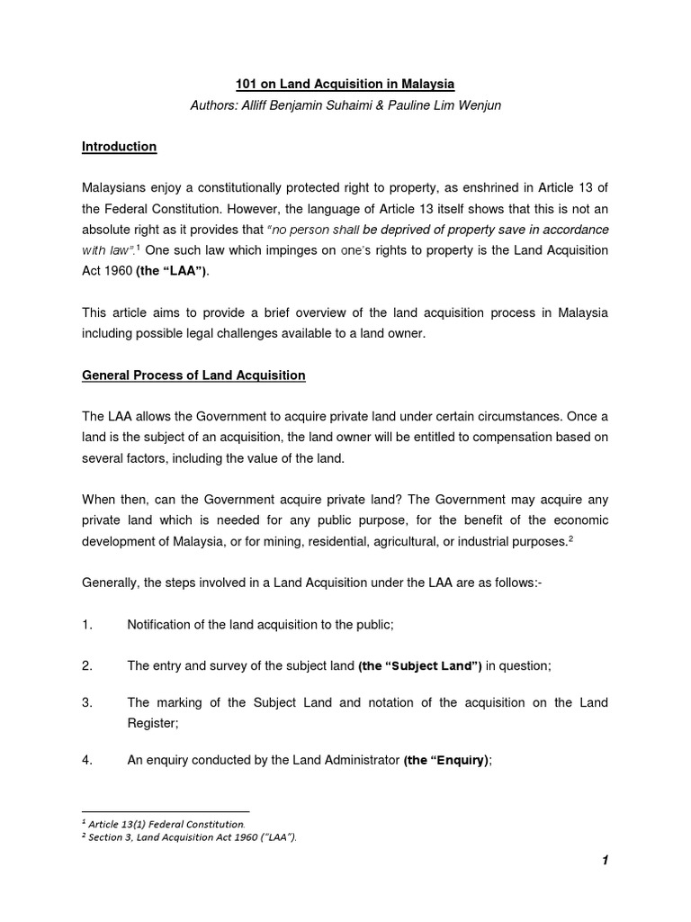 101 On Land Acquistion In Malaysia Article United States Constitution Property