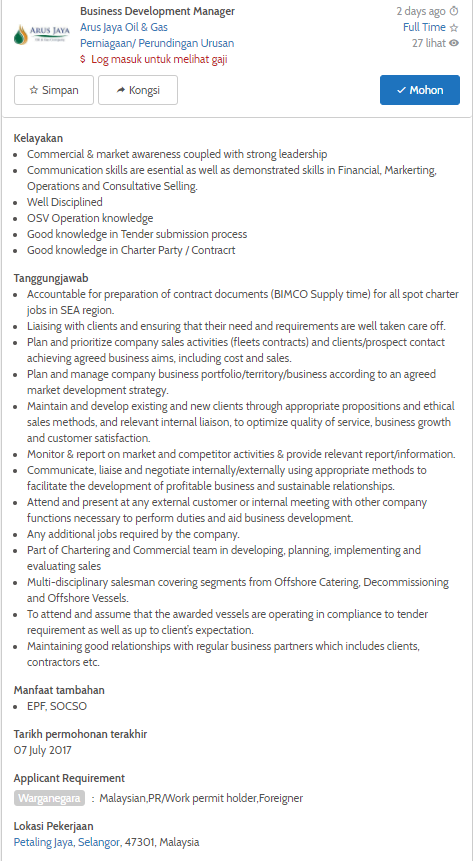 Jawatan Kosong Terkini Arus Jaya Oil Gas Admin Business Development Manager Kerja Kosong Kerajaan Swasta