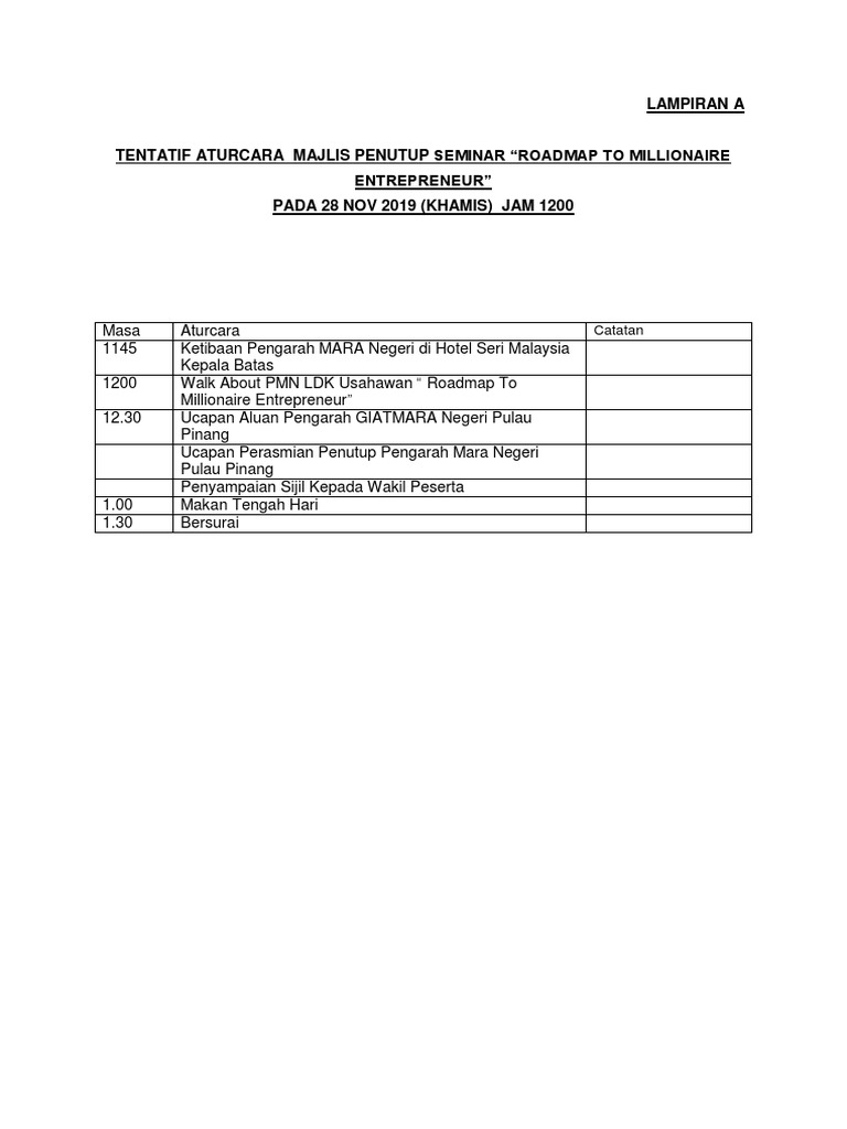 Tentative Aturcara Majlis Penutup Seminar Docx