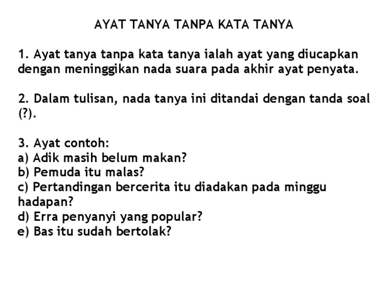 Ayat Tanya Dengan Kata Tanya Dan Tanpa Kata