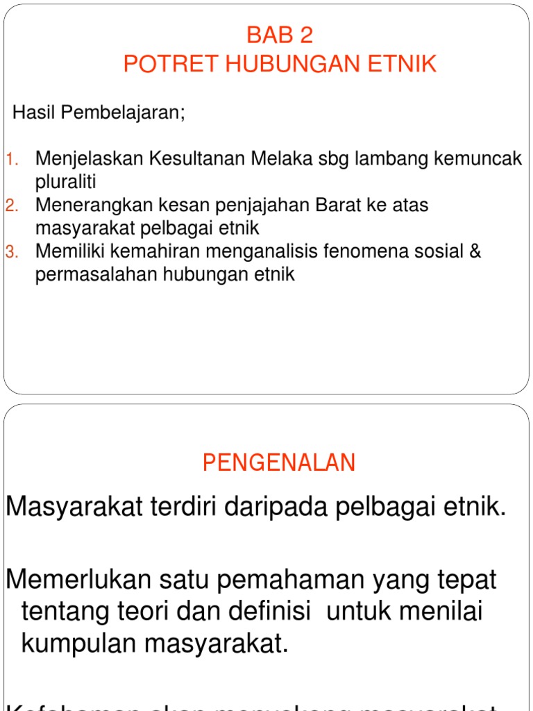 Bab 2 Bab 2 Potret Hubungan Etnik Hasil Pembelajaran 1 Memahami Sejarah Pembentukan Masyarakat Plural Di Malaysia 2 Mengenalpasti Teori Teori Hubungan
