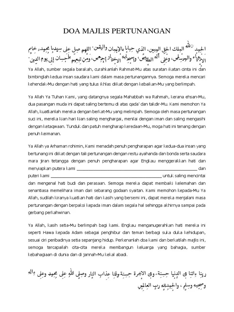 Ringkas Doa Selamat Majlis Pertunangan Pdf