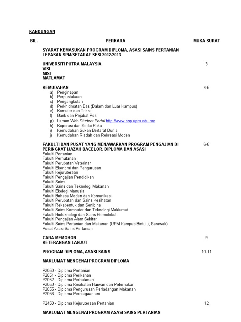Bil Perkara Muka Surat Syarat Kemasukan Program Diploma Asasi Sains Pertanian Lepasan Spm Setaraf Sesi 2012 Pdf Free Download