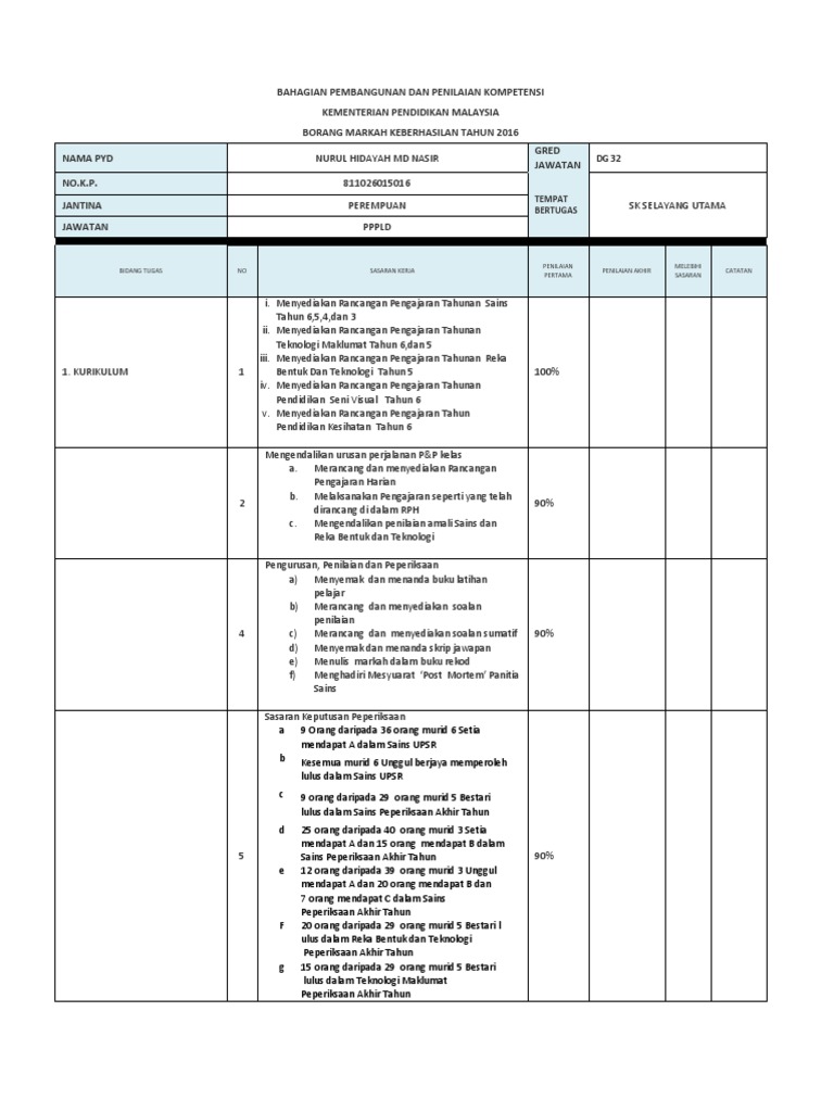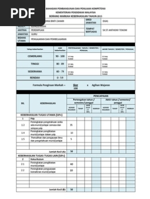 Bahagian Pembangunan Dan Penilaian Kompetensi Kementerian Pendidikan Malaysia Borang Markah Keberhasilan Tahun 2016 Nama P Guru Fails