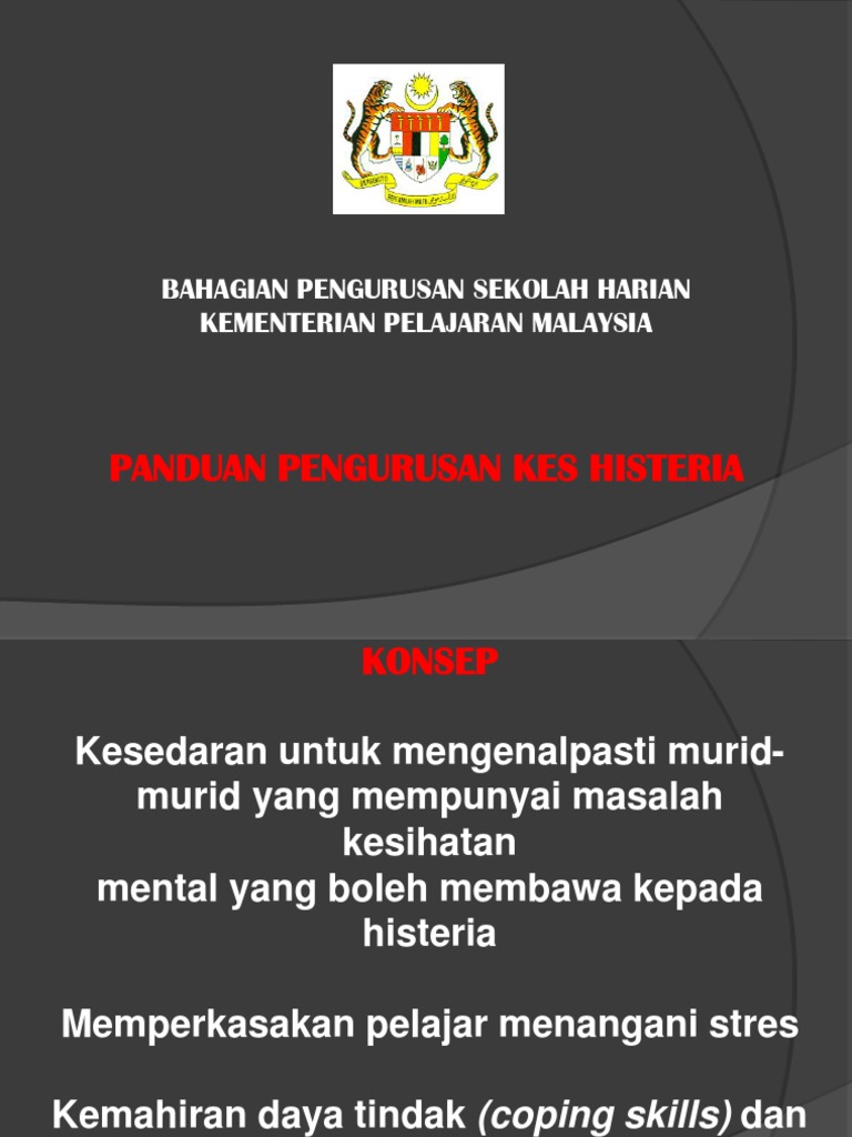 Panduan Pengurusan Kes Histeria Bahagian Pengurusan Sekolah Harian Kementerian Pelajaran Malaysia