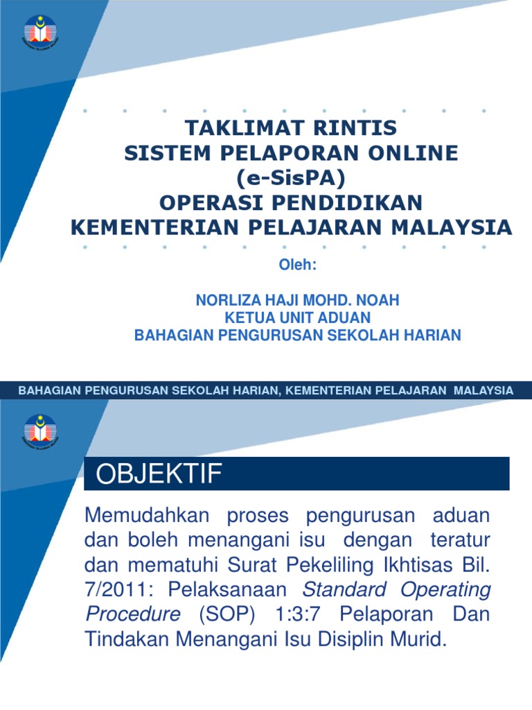Bahagian Pengurusan Sekolah Harian Kementerian Pelajaran Malaysia Cadangan Konsep Dan Pelaksanaan Standard Operating Procedure Sop Laporan Isu Disiplin Ppt Download