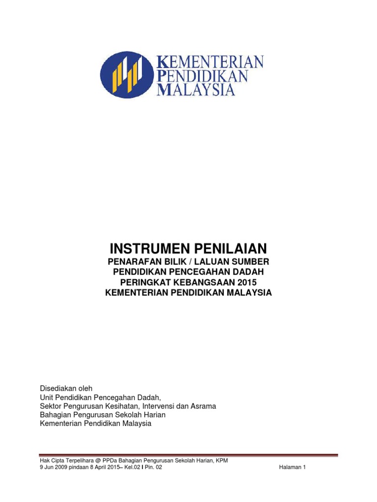 1 8 Instrumen Penilaian Penarafan Bilik Laluan Sumber Ppda Sekolah Pdf