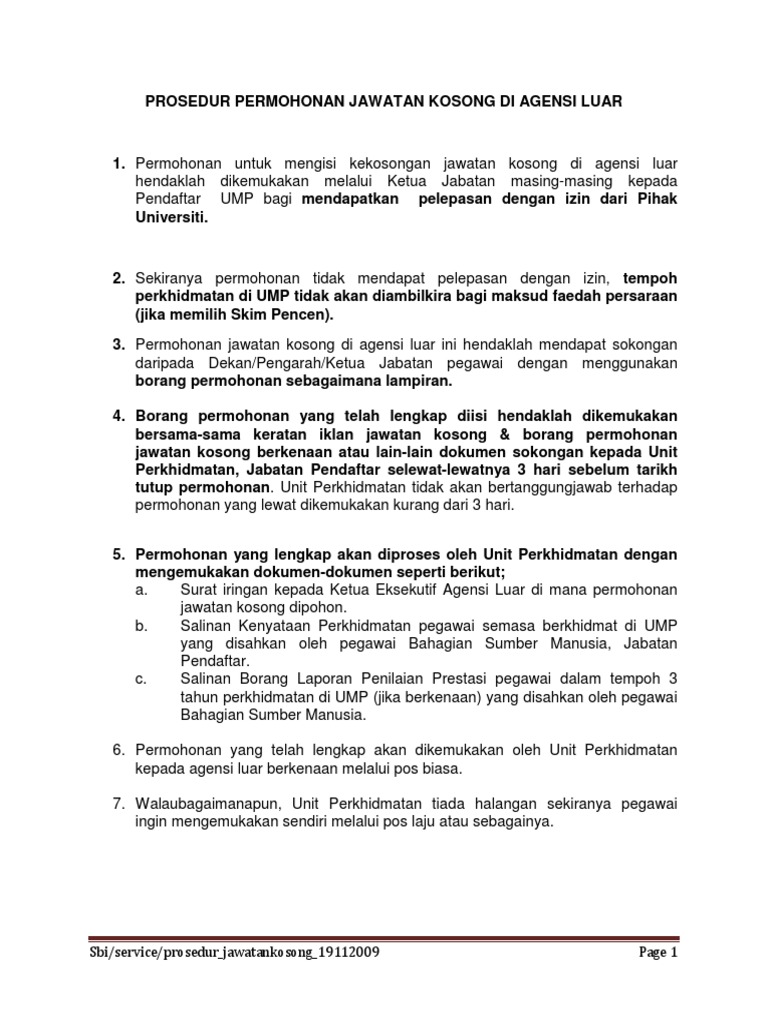 Ump Prosedur Jawatan Kosong Di Agensi Luar