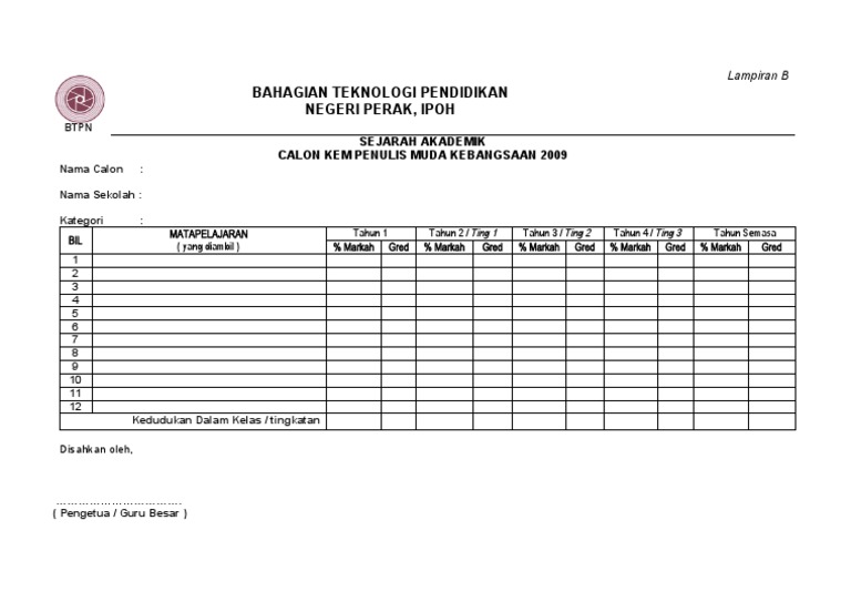 Bahagian Teknologi Pendidikan Negeri Perak Ipoh Sejarah Akademik Calon Kem Penulis Muda Kebangsaan 2009