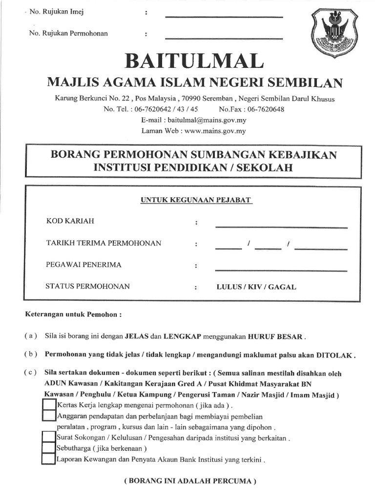 Borang Permohonan Sumbangan Kebajikan Institusi Pendidikan Sekolah 2016 Pdf