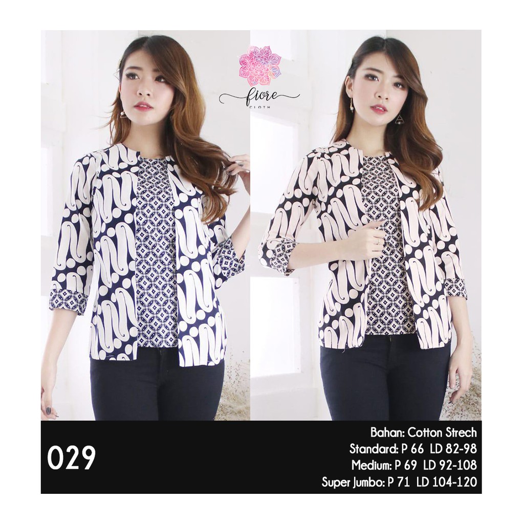 Fiorecloth 029 Atasan Batik Wanita Modern Baju Batik Wanita Lengan Panjang Shopee Indonesia