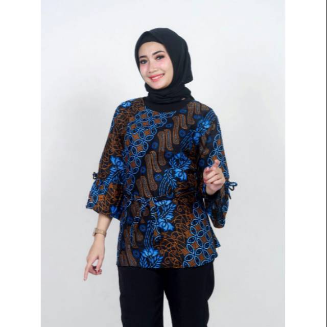 Jual Atasan Baju Batik Cewek Casual Premium Kerja Warna Biru Unggul Kota Pekalongan Aneka Batik Modern Tokopedia