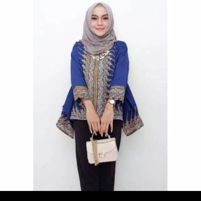 Baju Batik Atasan Warna Biru Lengan Panjang 7 8 Tampil Stylish Untuk Wanita Berbadan Besar Gemuk Bls2258c Xxl Toko Batik Online 2020