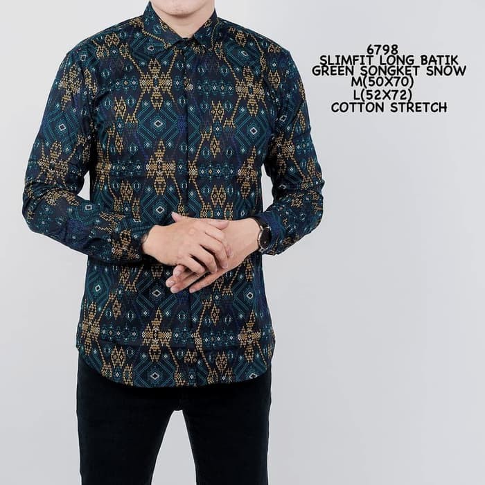 Baju Kemeja Batik Songket Lengan Panjang Pria Kantor Casual Slimfit Hijau Motif Kemeja Cowok Shopee Indonesia