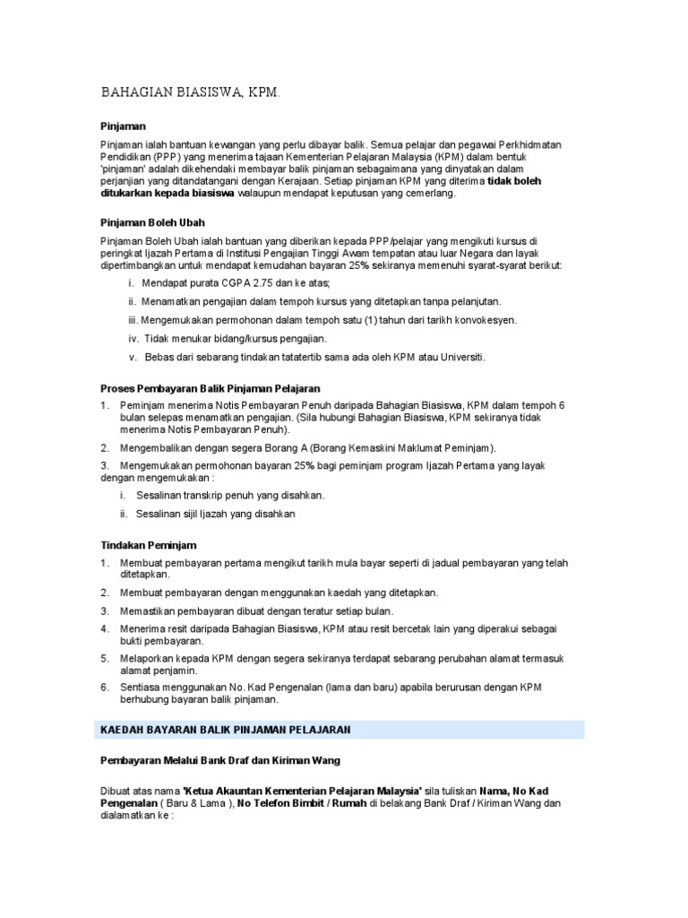 Pembayaran Balik Pinjaman Pelajaran Kementerian Pelajaran Malaysia