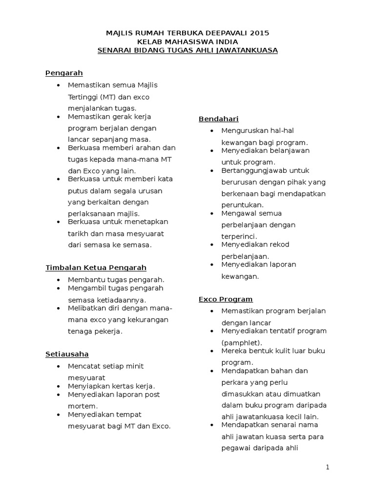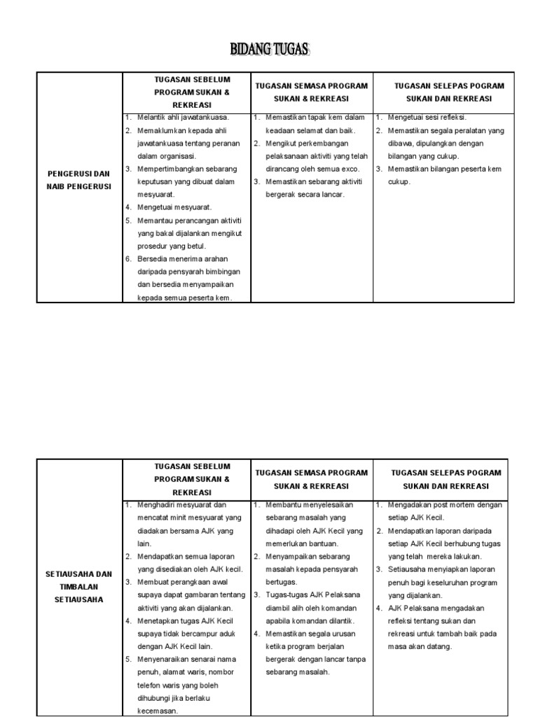 Bidang Tugas Setiap Ahli Jawatankuasa