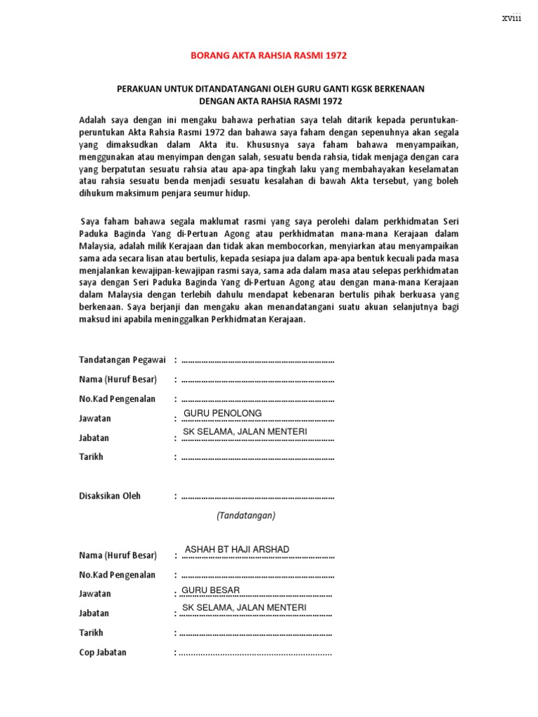 Borang Akta Rahsia Rasmi 1972 Pdf