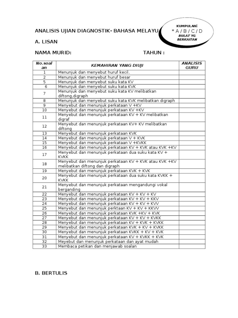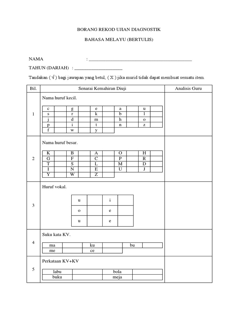 Borang Analisis Ujian Diagnostik Bm