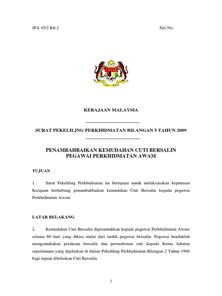 Pp Bil 05 2017 Pekeliling Kemudahan Cuti Bersalin Pegawai Perkhidmatan Awam Pekeliling Terbaru Kerajaan